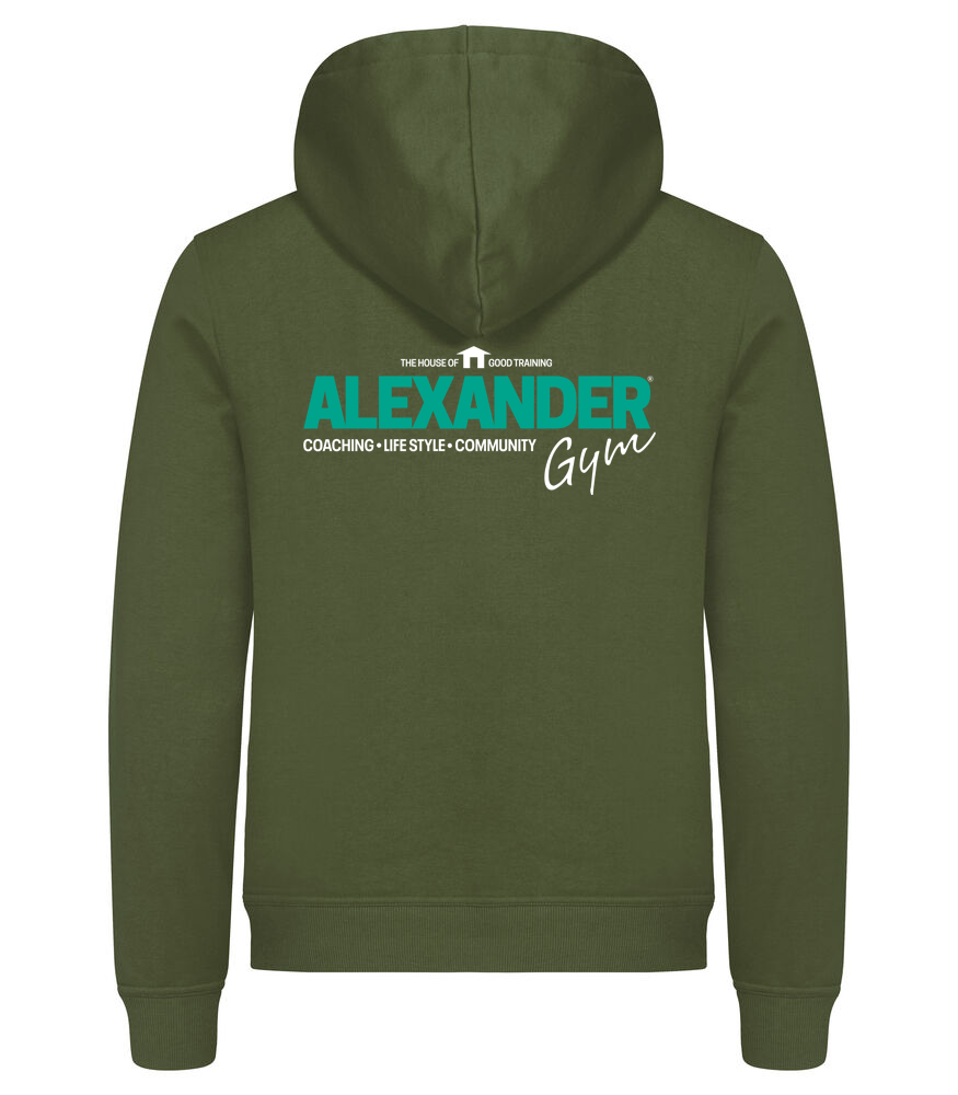 Ervaar het ultieme comfort en straal tegelijk kracht uit met de legergroene Alexander Gym hoodie. Ontworpen voor wie discipline, trots en doorzettingsvermogen ademt. Deze hoodie is perfect voor de warming-up, je herstelmoment of gewoon voor de straat – want jouw mindset stopt niet buiten de gym.